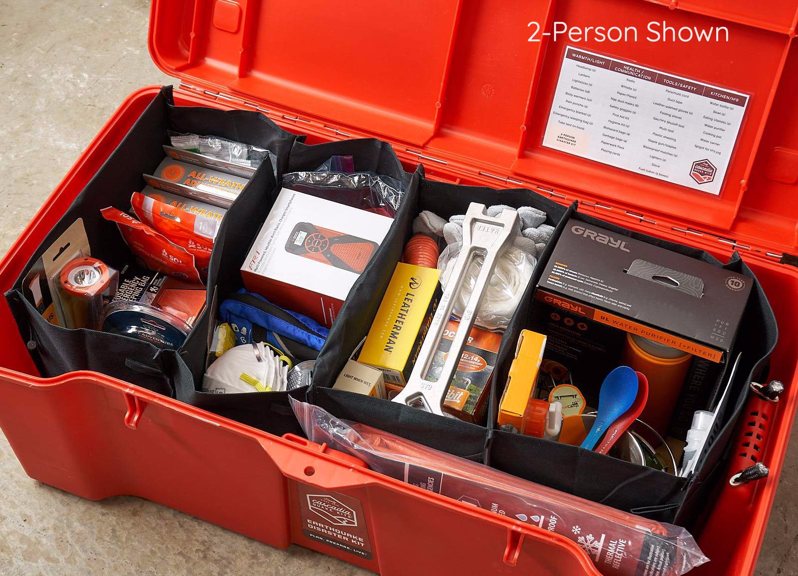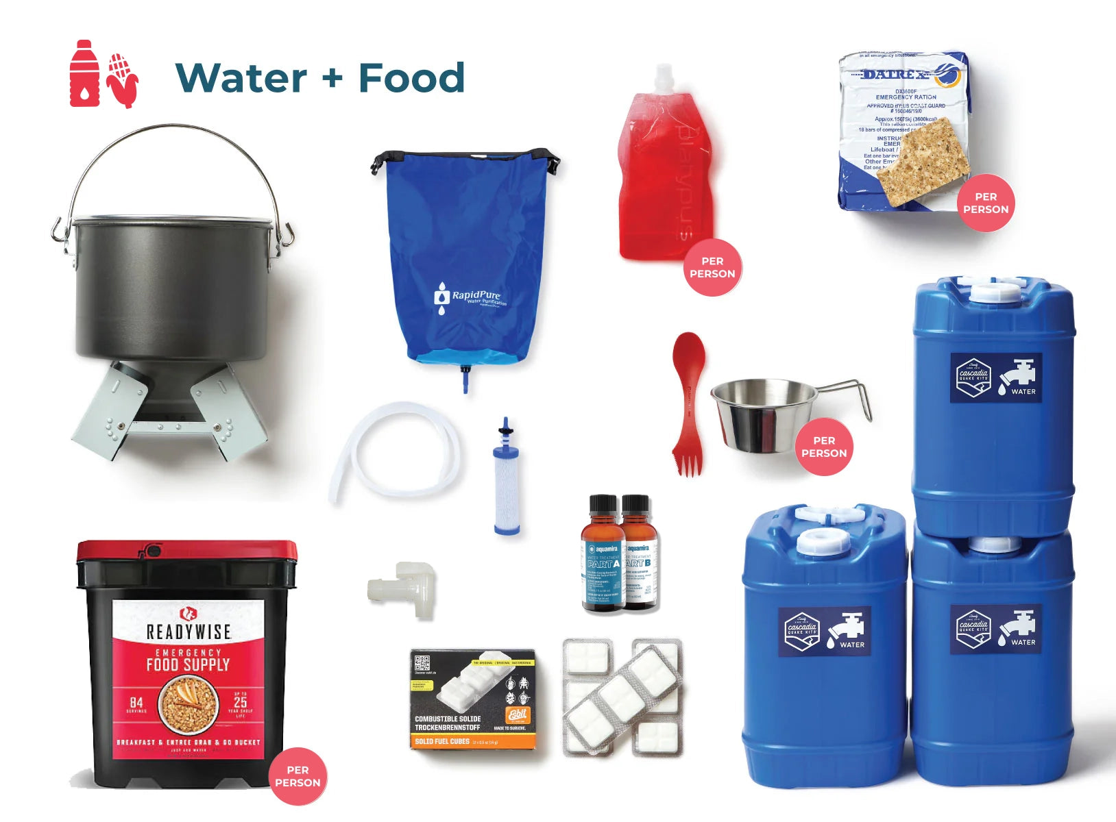 A Well-Equipped Solution for 2 Weeks Ready. The Comprehensive Kit follows the specific recommendations from the State of Oregon, Washington, and the Red Cross Cascades Region for 2 Weeks Ready — equipped to meet key needs for food, water, safety, and sanitation during a disaster. The Comprehensive Kit, our original offering, includes recommended supplies for the first two weeks after a disaster — such as cooking equipment, hearty freeze-dried meals with a 25-year shelf life, a high-capacity water purifier, basic emergency shelter items, multiple light sources, and a proven emergency toilet system. (See full kit contents below.) Equipped with essential tools and resources, the Comprehensive Kit helps you navigate the critical first two weeks following a major disaster with confidence and peace of mind.